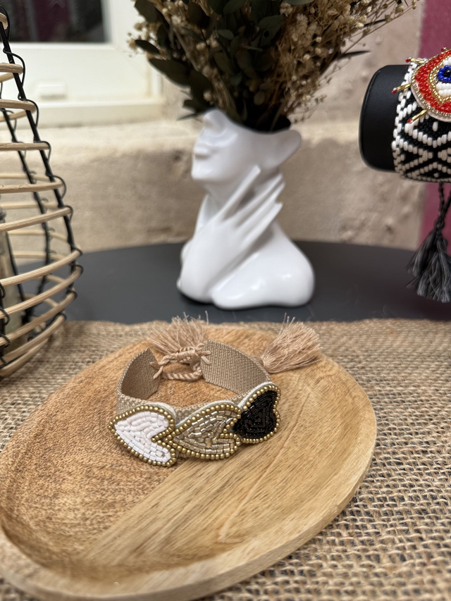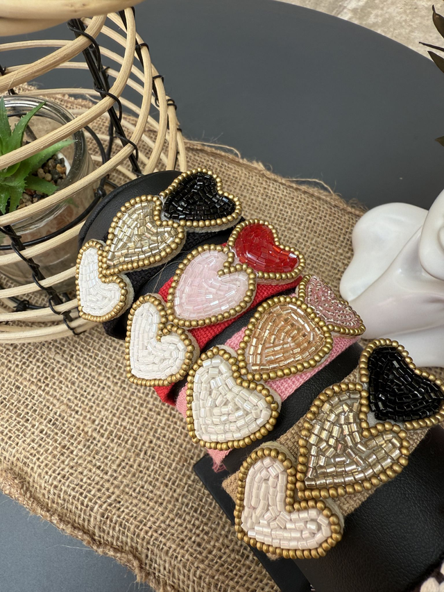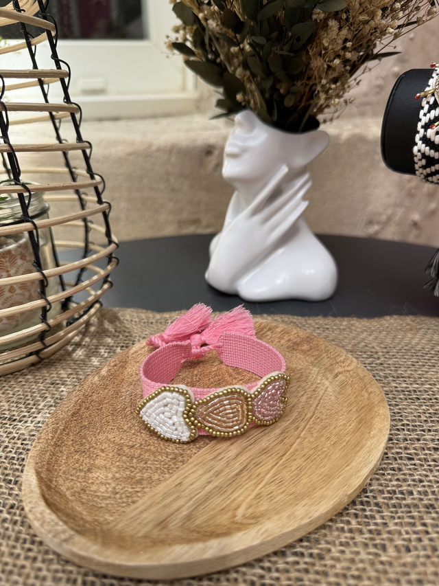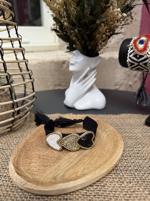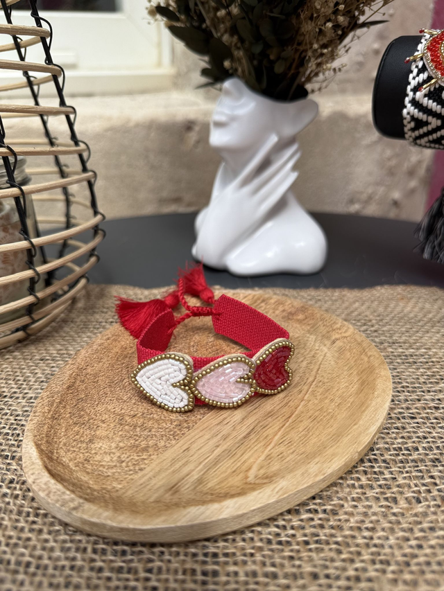 Bracelet brodé Bohème Chic - Cœurs