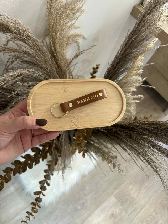 Porte-clé en cuir personnalisé ;