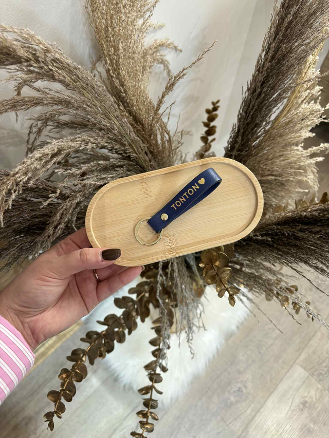 Porte-clé en cuir personnalisé ;